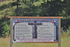 At that point I had only about five miles to go, which worked out to one Commandment per half mile. Not bad. I only saw one Ten Commandments sign on the Buffalo Run course, but there’s a section up by Kalispell where there seems to be a Ten Commandments sign around every corner. I started to think about organizing a Ten Commandments 10k, with the course passing as many signs as possible. I even envisioned themed water stations based on the Commandments. One would have Gatorade that runners couldn’t drink, because it would be someone else’s Gatorade, and you shouldn’t covet thy neighbors electrolyte drink.